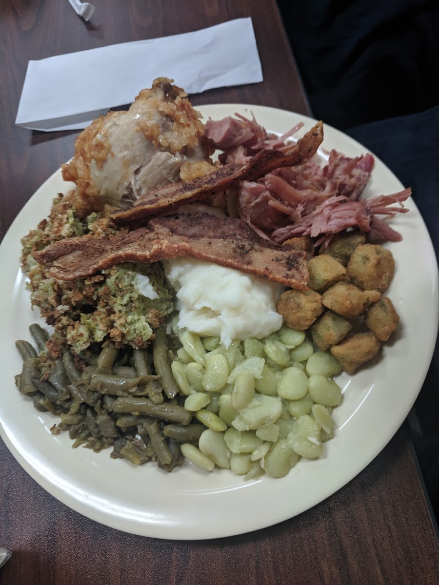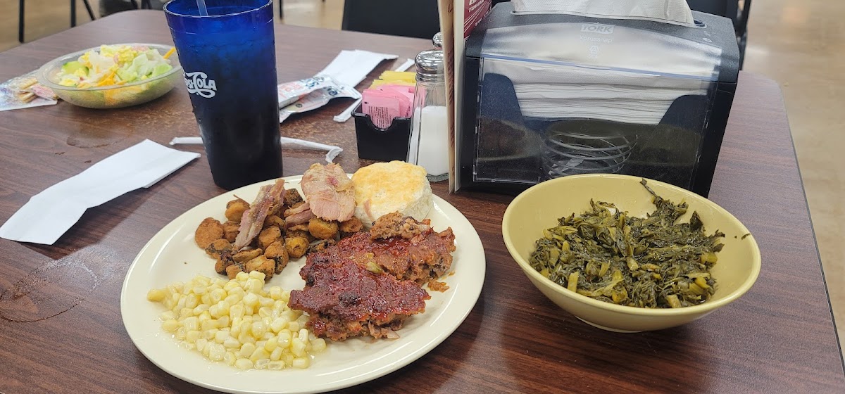 We ate here on Friday evening. It was a bit crowded but there is so much room you hardly noticed. The bars were not even backed up. It's just nice. The food is freaking amazing. I love the meatloaf. Oh and the banana pudding is awesome too. It's all you can eat for $12 and some change not including your drink.